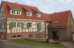 | Wir wollten es ursprünglich sanieren und restaurieren. Bald wurde aber deutlich, dass das nicht gehen würde. So haben wir uns schweren Herzens entschlossen, dass alte Haus abzureissen und es auf dem gleichen Grundriss wieder aufzubauen: das Fachwerkhaus wieder mit Fachwerk und Klappläden und die Scheune mit den originalen Natursteinen. | ![]() |